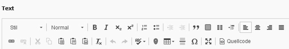 Texte können unter anderem mit Hilfe des "Real Text Editors (RTE)" eingegeben werden. Mit dessen Hilfe können Formatierungen einfach forgenommen werden. Die Erweiterung Pizpalue fügt dem Editor weitere Funktionen hinzu.